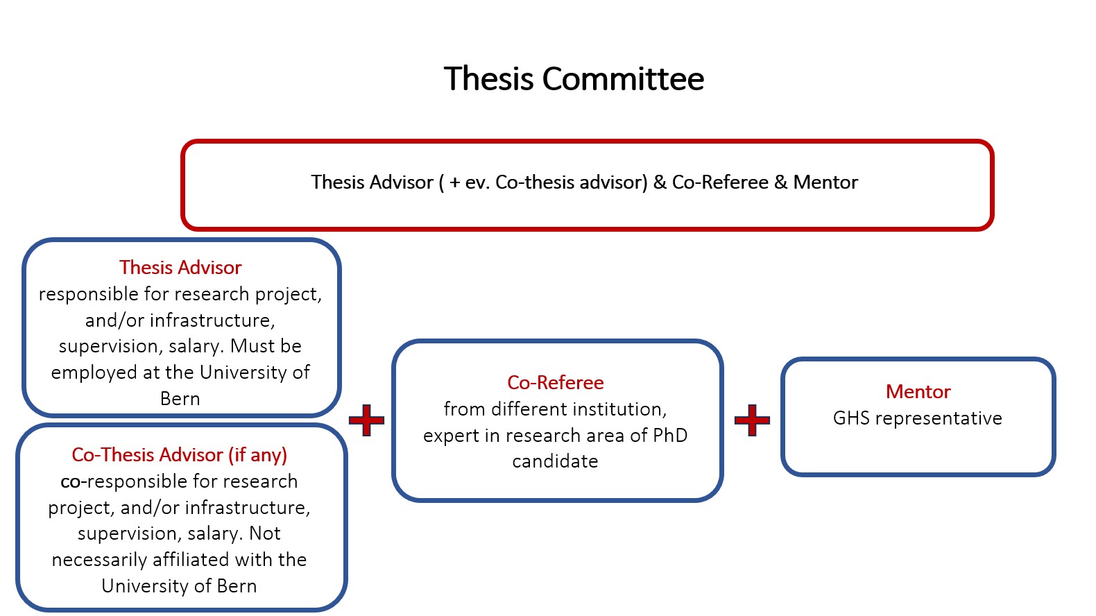The mentor represents the GHS in the thesis committee and is the contact person in the event of conflict between the thesis advisor and the doctoral student.